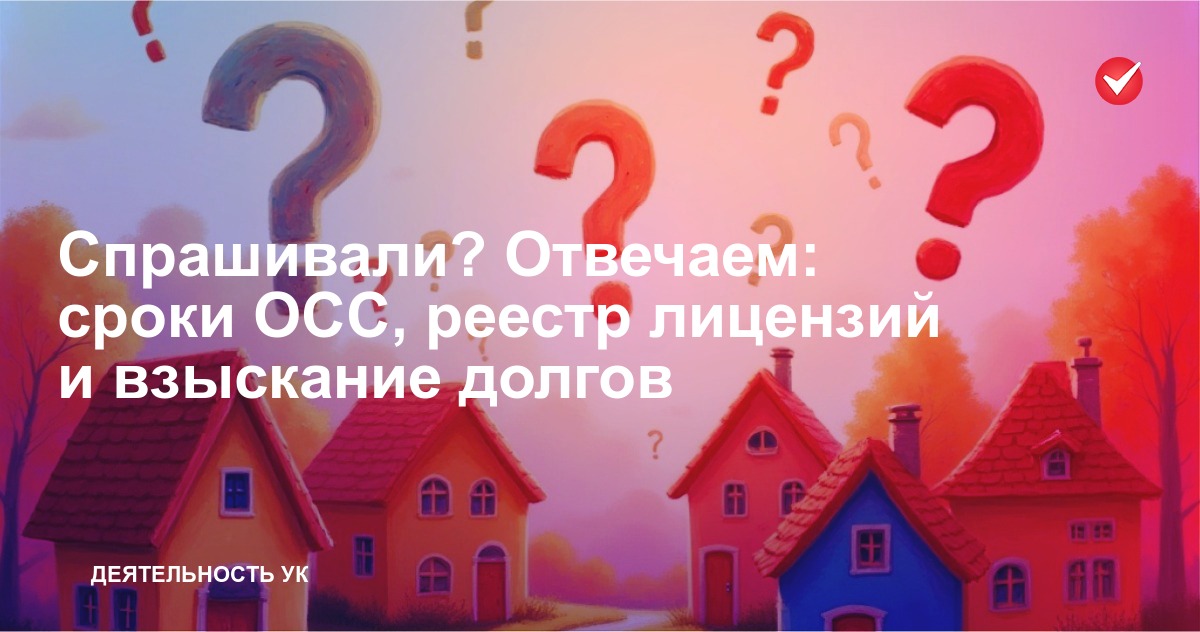 В рубрике «Спрашивали? Отвечаем» продолжаем публиковать разборы вопросов от управляющих МКД. Из обзора ответов от экспертов Ассоциации «Р1» за январь–февраль узнайте о продлении сроков ОСС и о возврате средств после отмены судебного приказа, а также читайте разъяснения по ещё четырём ситуациям из практики УО и ТСЖ.