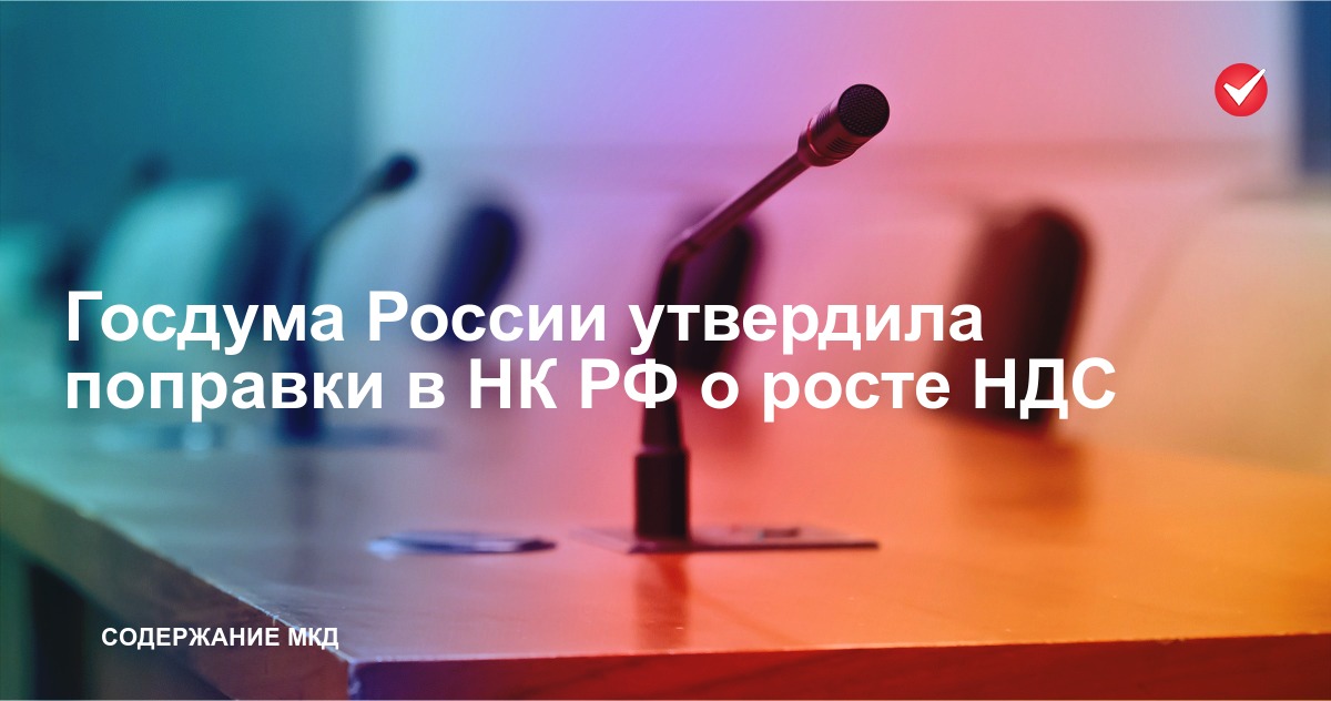 Депутаты приняли в трёх чтениях корректировки Налогового кодекса РФ, которыми предусмотрен рост на 2% НДС и снижение лимита доходов для начала его уплаты при упрощённой системе. Предложенные отраслевым комитетом льготы для УО и РСО в этой сфере законодатели не поддержали.