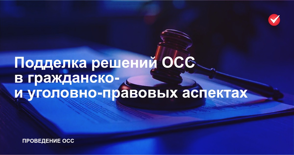 Подделка протоколов и решений общего собрания собственников уголовно наказуема. На примерах из практики рассмотрим два аспекта фальсификации документов ОСС и их последствия: гражданско-правовой и уголовно-правовой, и выработаем на их основе алгоритм действий на такой случай для УО и жителей.