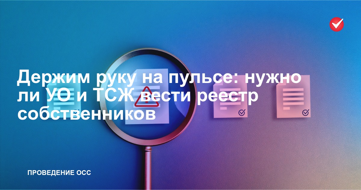 14 октября в прямом эфире поговорили о реестрах собственников и обсудили, почему по-прежнему нужно их вести, в каких случаях это не требуется, что в них включать и как правильно передавать по запросу инициатора ОСС. Читайте обзор тем с онлайн-трансляции и забирайте раздаточные материалы.
