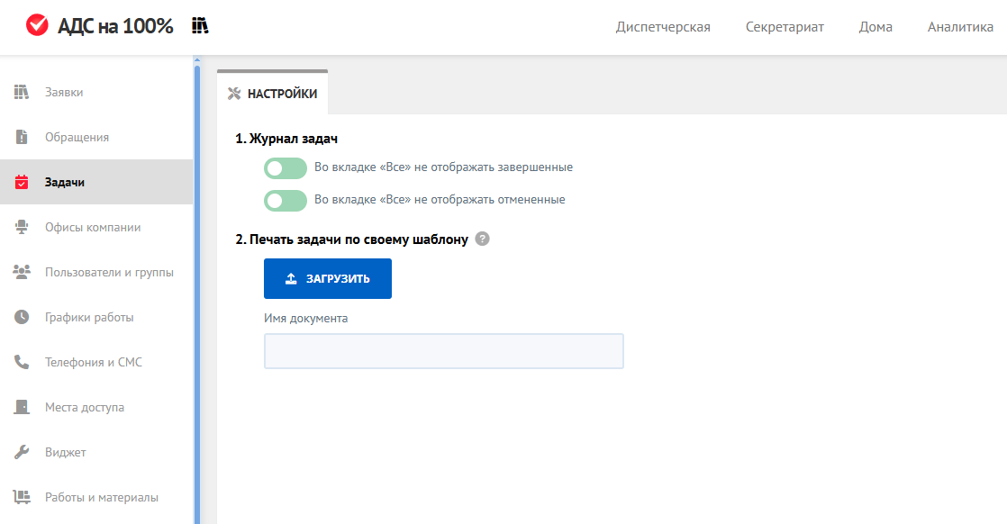 В этом разделе можно настроить отображение статусов задач в журнале во вкладке Все. Для этого передвиньте курсор в активное положение напротив Во вкладке «Все» не отображать завершенные или Во вкладке «Все» не отображать отмененные.